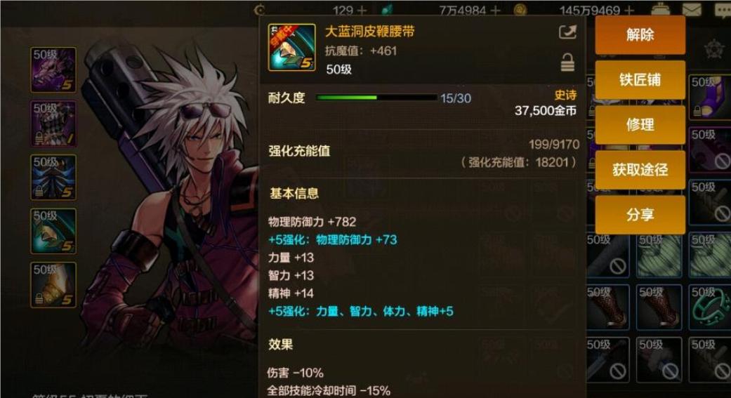 而另外一件就是大名鼎鼎的大蓝洞皮鞭腰带了,不过这名气却是被骂出来的。毕竟大家第一次看到这件大蓝洞的属性都忍不住骂出声了,这竟然会减少10%的伤害。虽然这能减少15%的技能冷却时间,但这样算下来,这大蓝洞还不如上面的脊石腰带呢,毕竟脊石腰带减少5%伤害却能减少12%的技能冷却时间。但其实这件大蓝洞还是被低估了,别看这只相差3%的技能冷却时间,但有时候却能多打出一套连招出来。而这两件腰带都非常适合搬砖,堪称搬砖神器,而且也是一些职业的毕业散件腰带了。