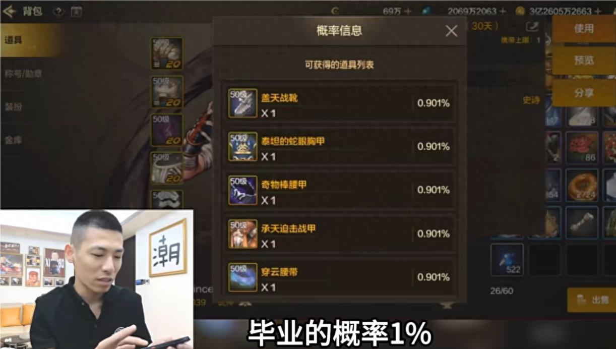 虽然表面上来看,从这个随机罐子里面开到毕业史诗装备的概率并不高,大家只想得到某一件史诗装备的话,那么概率只有不到1%。但如果大家缺少的史诗装备是很多件,那么其获得概率就会高出不少了,毕竟只要开到其中一件也算是不亏的。