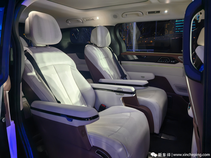 配置部分,其除了搭载上述提到的电动双侧滑门、电动尾门、前后排双层隔音玻璃、中后排隐私玻璃、“天神之眼”高阶智驾辅助系统、云辇-C智能阻尼控制系统等配置外,还具有100km纯电续航、前排侧气囊、12个车载摄像头、单色氛围灯、12喇叭扬声器、透明底盘、15.6英寸中控屏、12.3英寸液晶仪表、6kW对外放电等等。