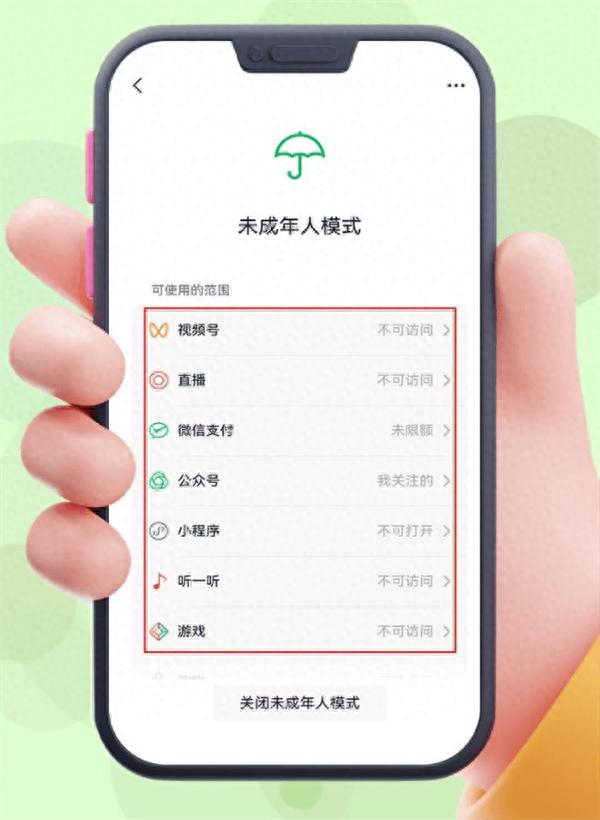 微信未成年人模式上线:默认关闭游戏、直播等多项功能
