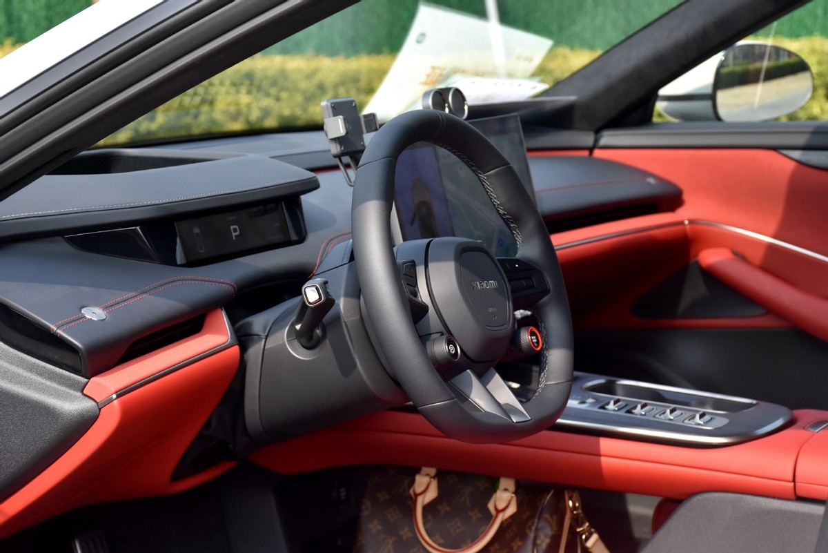 其次是内饰方面,和外形相比,内饰部分的争议其实就没有那么大了,小米SU7这套内饰主打的是一个简洁感,笔者体验的实车采用了红黑双拼色内饰,应该也是主打色之一。