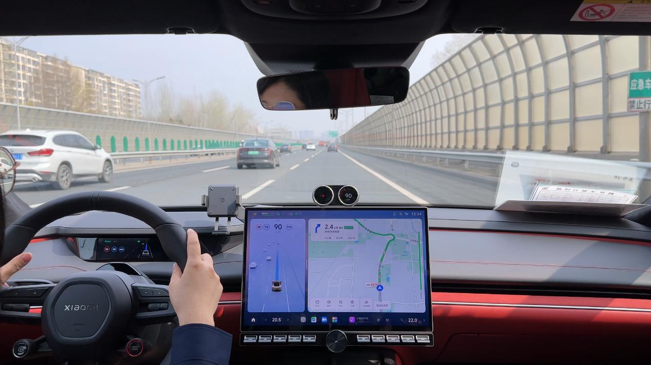目前小米SU7能够实现高速路段的高阶辅助驾驶,通过方向盘左侧的圆形智驾按键即可一键打开辅助驾驶,从简单的体验来看,常规的车道巡航表现挑不出毛病,加减速都比较果断,跟车距离也能够自由调节;不过变道策略还是比较保守一些,更多还是考虑到了安全问题。