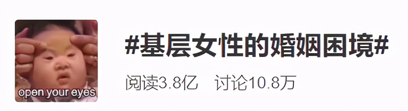 前段时间,网上一条热搜浏览破3.8亿,说的就是基层女性婚姻里的困境。