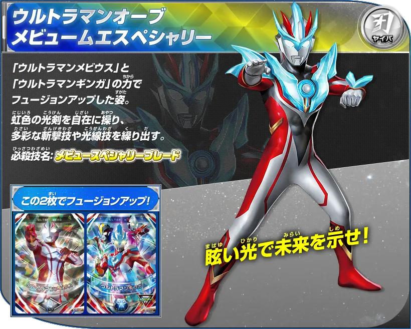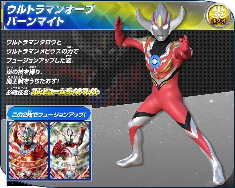 泰罗奥特曼和梦比优斯奥特曼的卡片双重读取后融合升级的姿态,肉搏战多以力量为主,擅长操纵炎之力,并以此施展出包围着火炎的灼伤型格斗技。