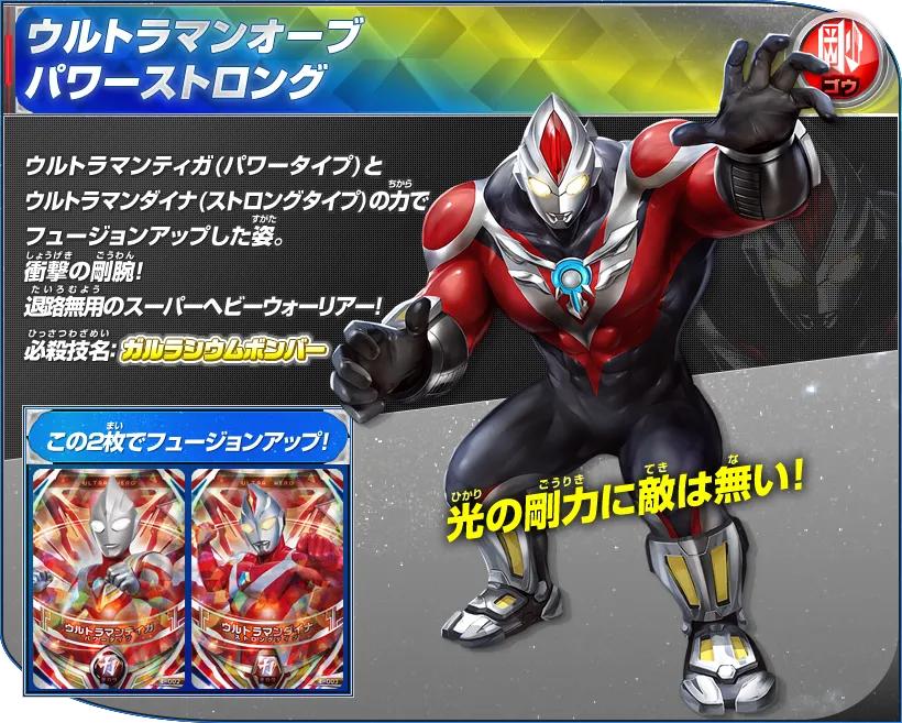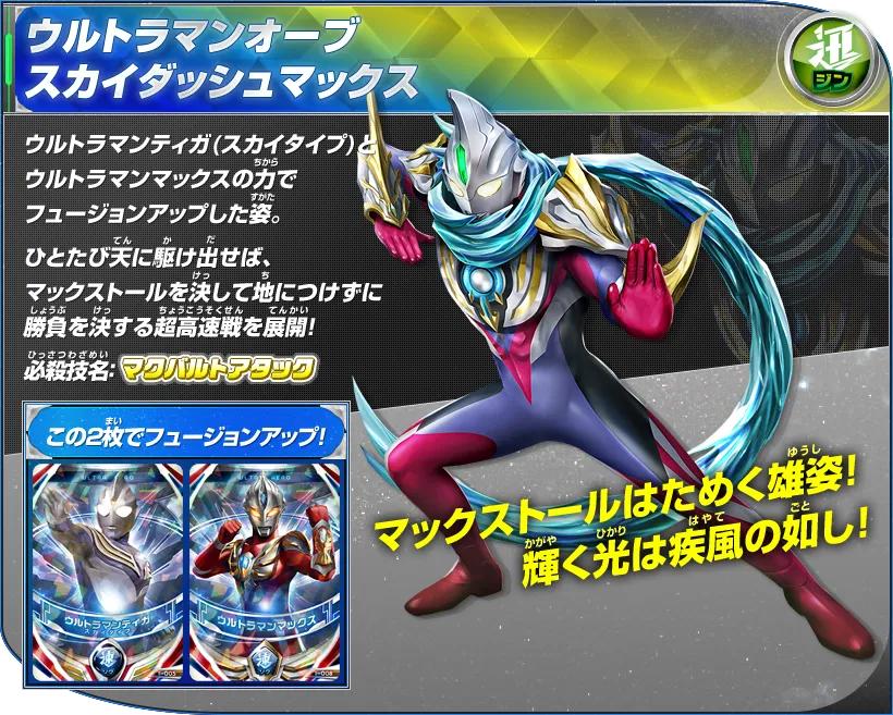 杰克奥特曼&赛罗奥特曼的卡片双重读取后Fusion Up的姿态。擅长格斗战,所施展的手刀和踢技均带有强烈的切割效果,作战迅速,攻势迅猛,可以瞬间移动,并且擅长于使用武器作战,用三叉戟型的武器“欧布头镖长枪”来战斗!