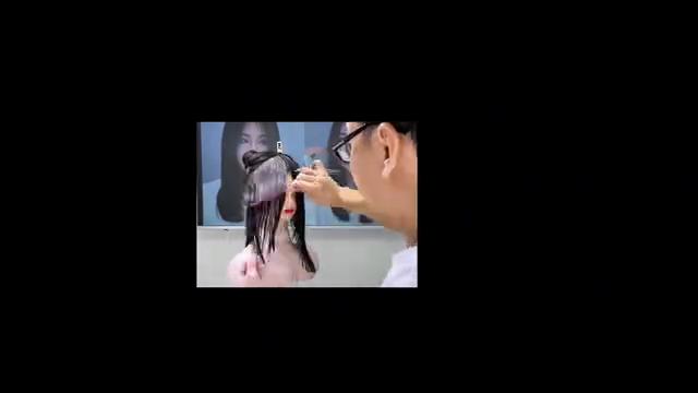 由于头毛的发量相对少,所以一个后上坐标也能剪好,所以要懂其结构原理,遇到发量多少都可以。接下来刘海如何营造虚线的氛围感?所以大约一指宽分到外眼角。接下来将导线定到嘴角的位置,再将发片高角度提高选择正刹。千万不要骑着剪,锯着切口随意很明显,只要向后一撩,向前向后的美感都不用挥刀。