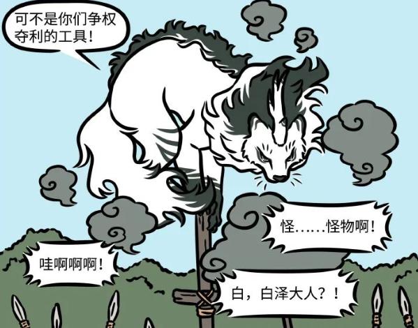最近更新的《非人哉》漫画里,说的是过去的故事,以白泽为主角的一个番外,提到白泽被人类绑了想拿他当战争机器,结果白泽轻轻松松,打开了绳子,然后恢复了原型。