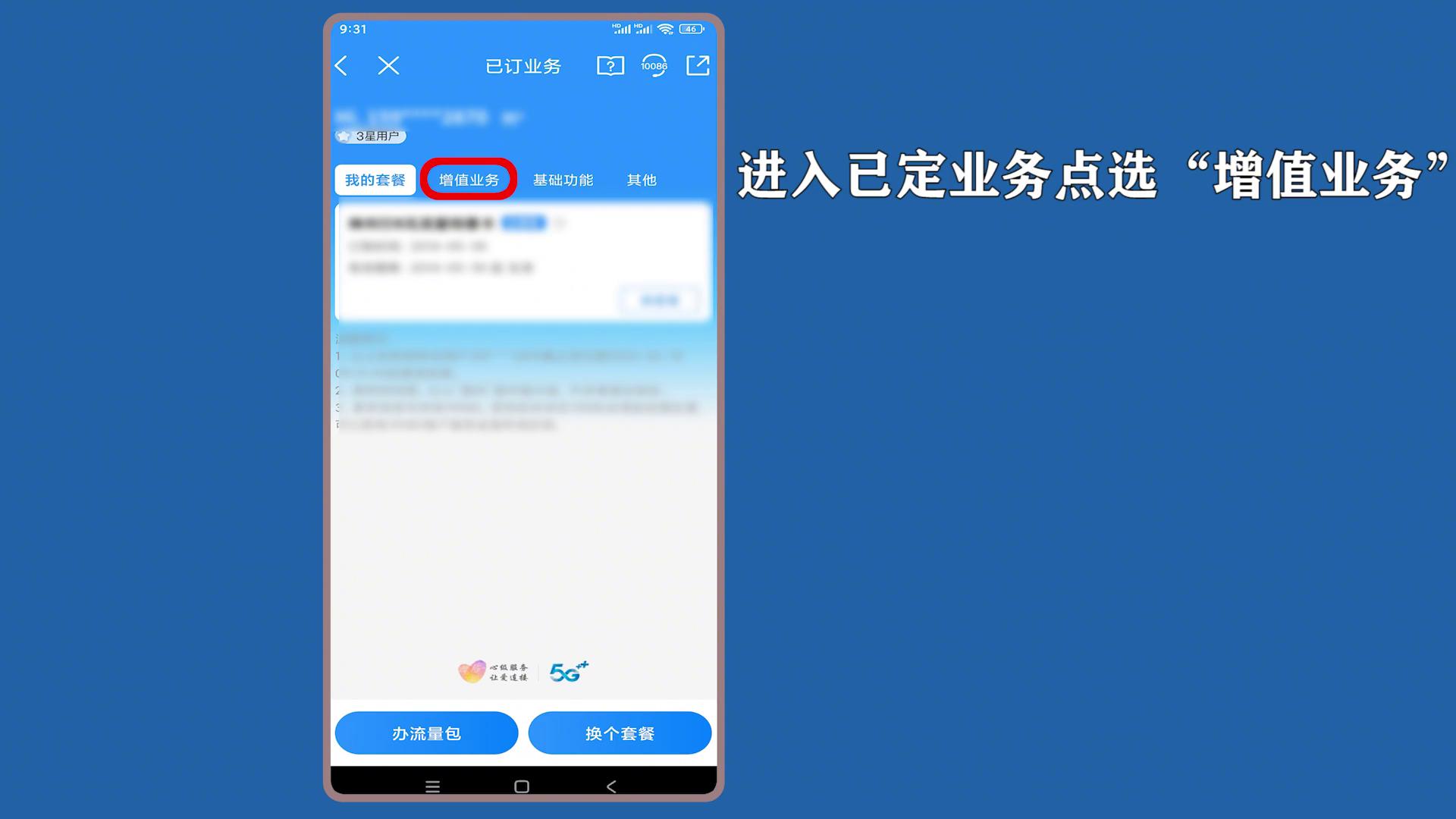 ·打开我的,点击已定业务,进入已定业务,点选增值业务。