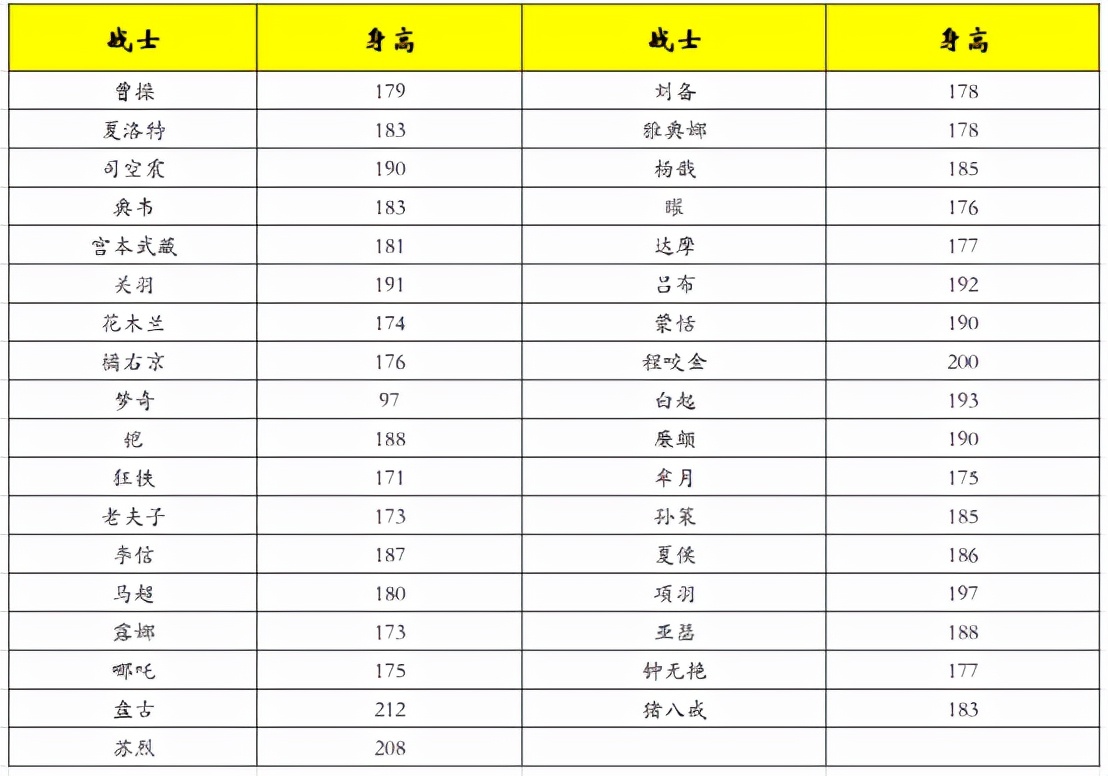 截止目前为止,王者荣耀已经出了106个英雄,每个英雄都有着自己的身高,有的英雄建模看起来很高,但是实际身高却不高。而有些英雄身高看起来不高,但是实际却高的吓人。最主要的是,现实中百分之50的男人居然都没有貂蝉高!一起看下你和哪位英雄的身高一样吧。(弈星身高是彩蛋)