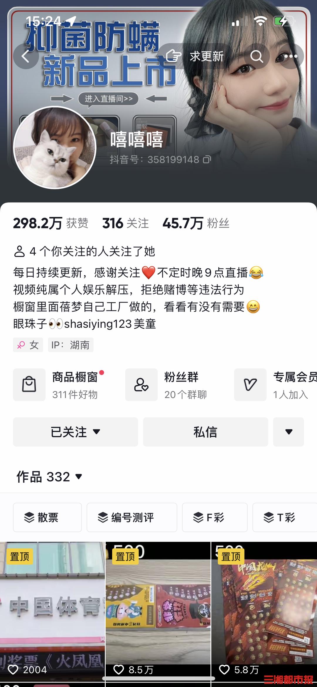 “每个视频会刮500元到1000元不等金额的彩票,市面上所有的彩票种类都买过。”陈莹介绍,一整本刮刮乐价格在600元到1000余元不等,此外她也会买一些散票,集中“开奖”。平日除了录视频、发视频,她会在每晚9时开直播,与粉丝交流刮彩票心得。
