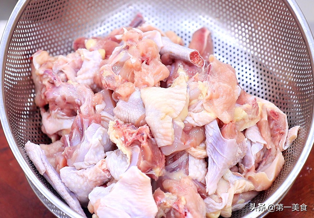 准备三黄鸡一只,把鸡肉剁成均匀的小块,清洗干净。