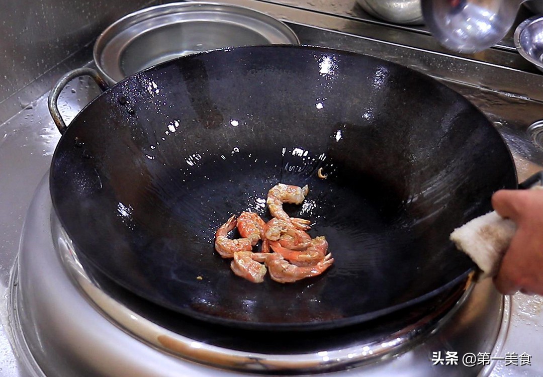 把锅烧热,加入植物油滑锅,滑好锅以后 ,倒出热油留少许底油,把大虾倒入锅中,大虾煎香以后倒出来备用。