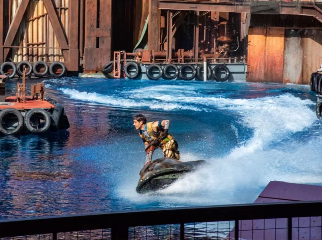未来水世界的“水上爆破特效”一直都是环球影城最受欢迎的项目之一。而北京环球度假区的“未来水世界”首次以景区的形式亮相,可以观看水上特技表演和枪战、爆炸特效。步入“未来水世界”主题景区,氛围充满魔幻感,最神奇的是洗手间里也能听到海浪声。
