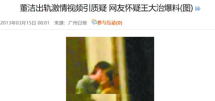 广州日报:董洁出轨激情视频引质疑 网友怀疑王大治爆料