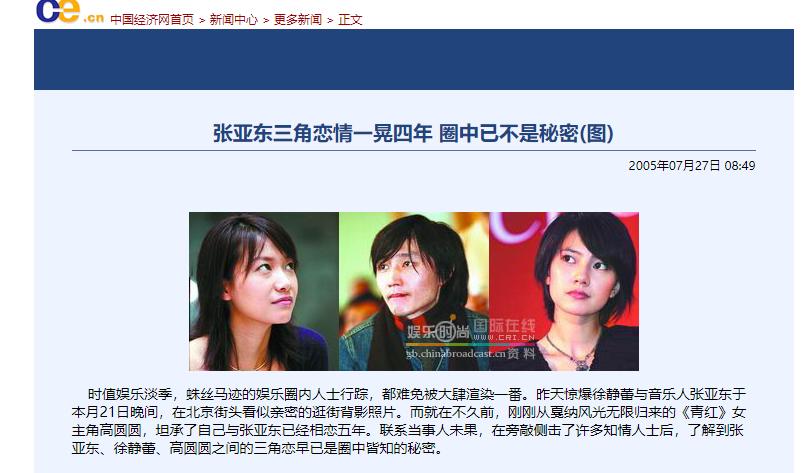 而在2000年代初,徐静蕾又卷入张亚东与高圆圆的感情纠葛。