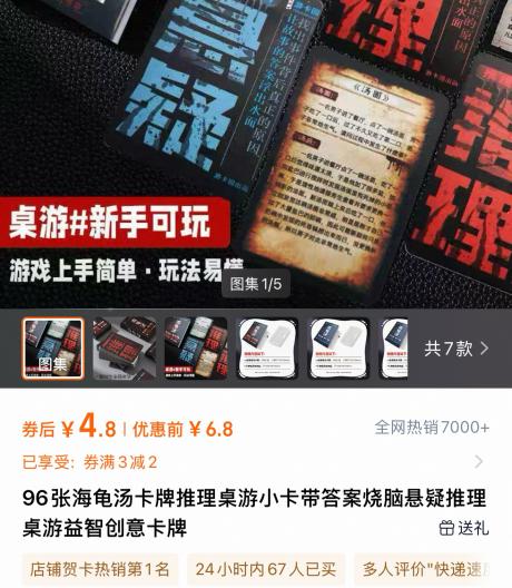 法治网记者在某电商平台上联系到一户销售“海龟汤”游戏卡牌的商家,通过向客服了解情况得知,相关产品并没有年龄限制。值得注意的是,尽管平台页面上,明确显示此类内容不得向未成年人售卖,但在实际购买过程中,商家并不会对购买者的未成年身份进行核实,未成年人也能顺利下单。记者注意到,该产品销量十分可观,店铺页面显示,全网热销7000+。