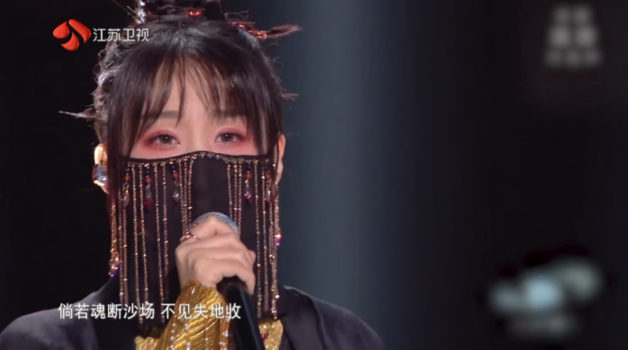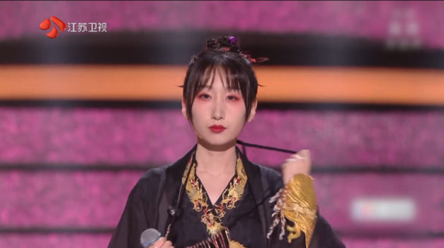 「等什么君」完美的唱功惊艳全场,揭开面纱的瞬间则是将现场的氛围掀到了最高潮!歌曲前半段,「等什么君」面带粉纱“犹抱琵琶半遮面”,在美轮美奂的舞美灯光左右摇晃刹那间,揭开面纱,高马尾造型颇具武侠范。歌曲下半段,「等什么君」便以“江湖女侠客”的模样倾情演绎,让词曲里的感情变得更加浓郁。