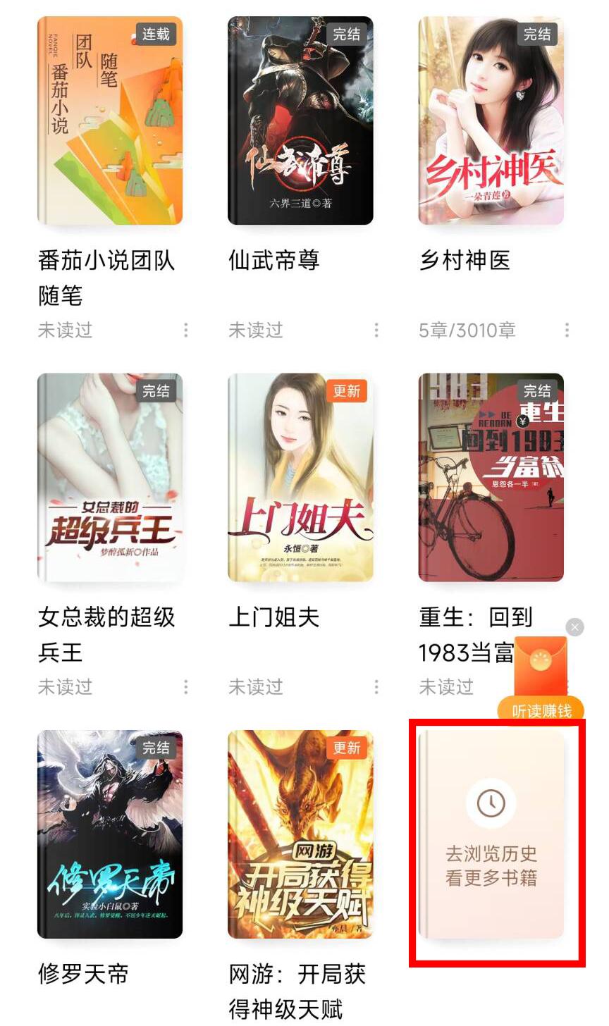 (1)在书架,番茄没有原生广告,而七猫有。