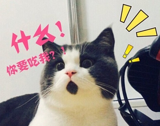 睁大眼睛,竖起耳朵,张开嘴巴,表现出非常惊讶的样子。通常这是猫在闻到鱼肉时的反应。