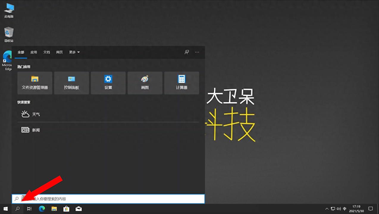 在Win10系统里点击左下角的“搜索”图标,然后输入“启动应用”这四个字。