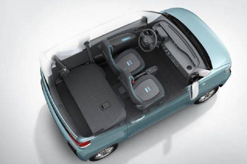车型长宽高分别为2917/1493/1621mm,轴距不超过2米,但却设计了4个座,通常来说1-2个人的通勤很轻松,如果偶尔应急载一下朋友去地铁站也是可以的,至少比smart仅能坐2个人要实用。而且后排可纯平放倒,整车后备箱容积能提升至741升,出差去机场放个行李箱也不是问题。