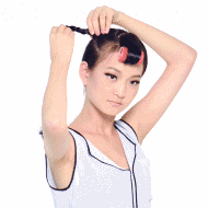 Step 1.用卷筒卷起刘海儿,增加刘海儿的轻盈感。