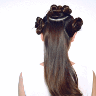 Step 4.将两侧和脑后的头发也照这样做成4~5组发髻,你就可以去睡觉了,第二天醒来只要把头发拆开即可。
