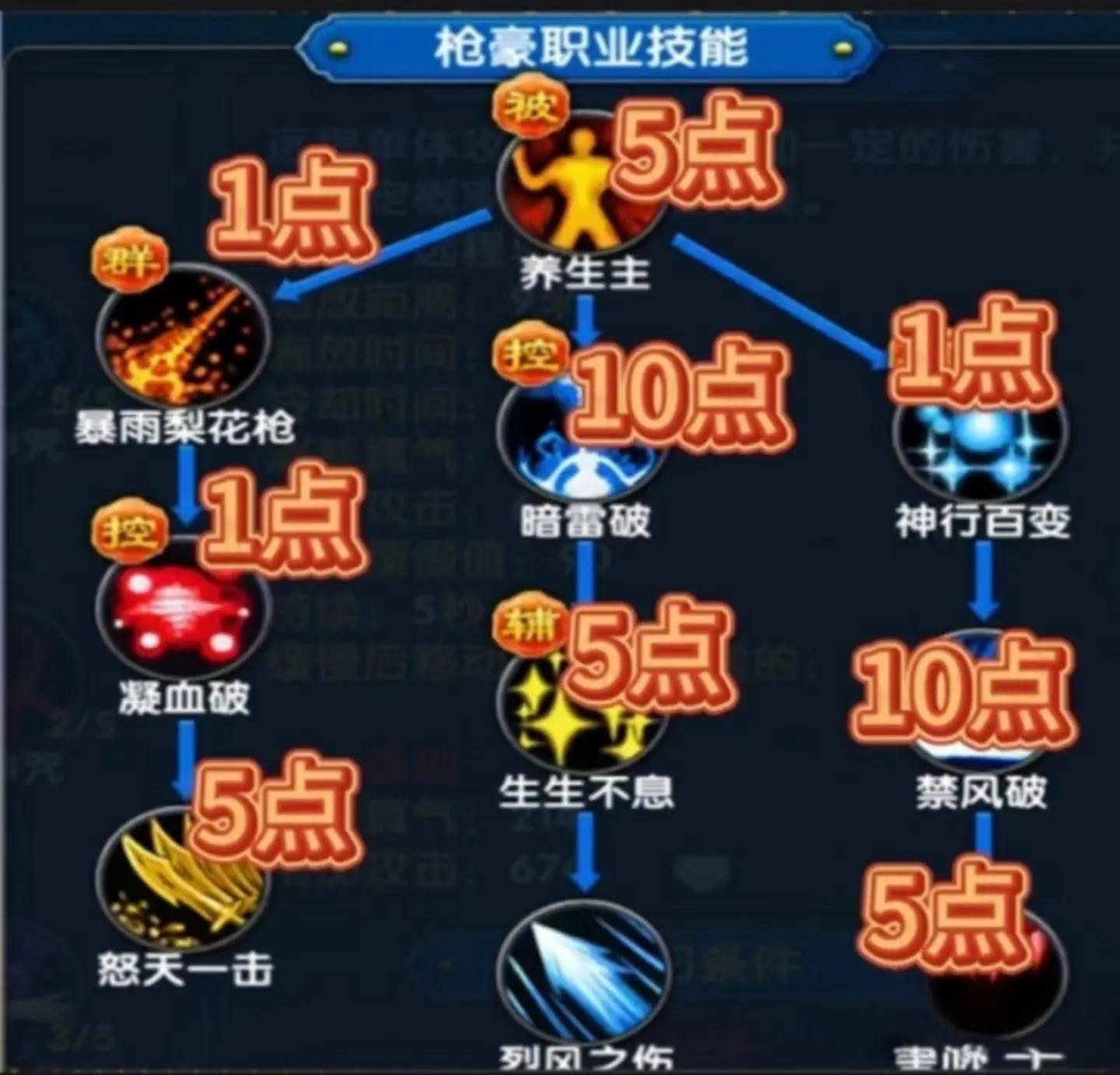 枪豪职业需游侠13级、菜鸟6级方可解锁全部技能,建议优先完成主线任务提升等级。 - 点数预留: