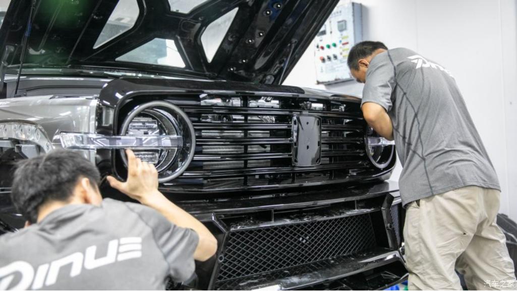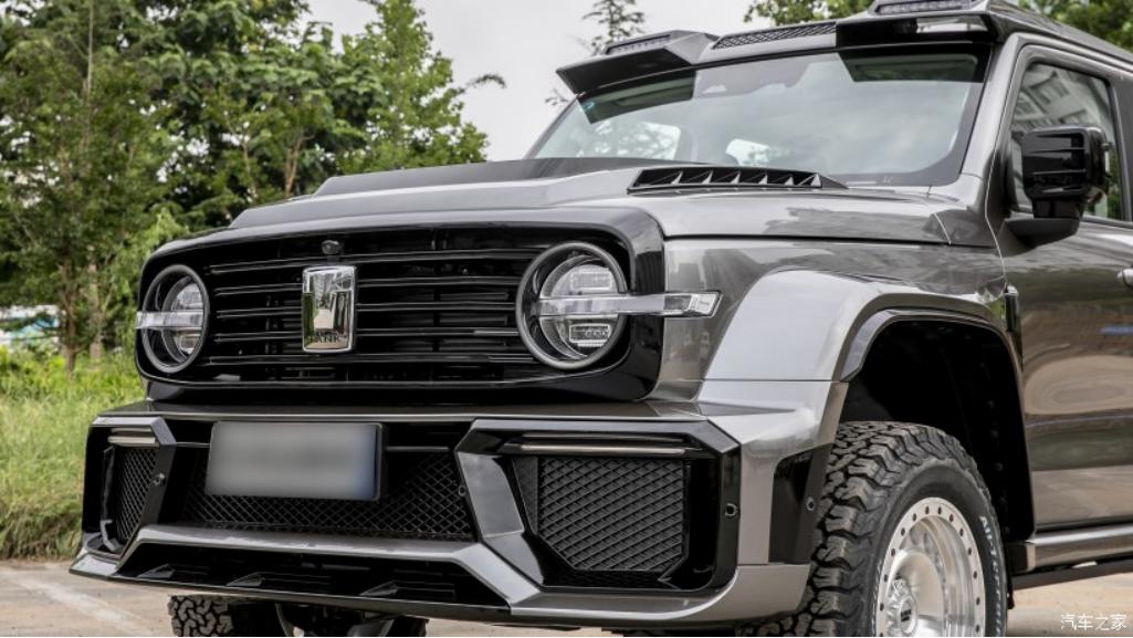 这辆车是坦克和顶火联合生产的,所有改装都是合法的。从外观上看,脸进气格栅的外观也做了很大的改动,只保留了两个原厂的圆形大灯,所以乍一看你甚至看不出这是一辆坦克300。当然,新车在越野性能上也有了很大的提升。车身的悬挂提高了,全地形轮胎也换了。备胎外装,充满朝气。车顶行李架配有各种户外专业工具、油桶和侧帐。车顶行李架上金属上刻有空的顶火英文,提升了精致感。