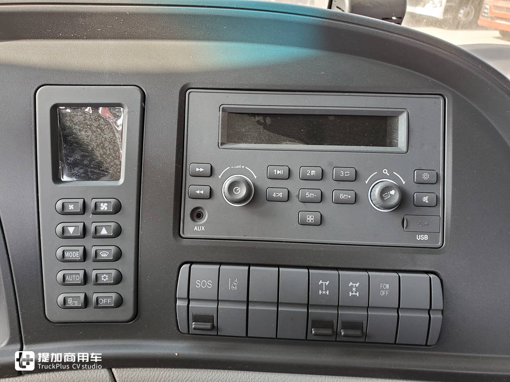 方向盘、仪表盘的设计全部源自奔驰重卡,全部都是欧曼提供的标配,方向盘不带多功能按键,仪表盘没有大面积液晶屏,驾驶室配置可能不及同价位竞品车型。