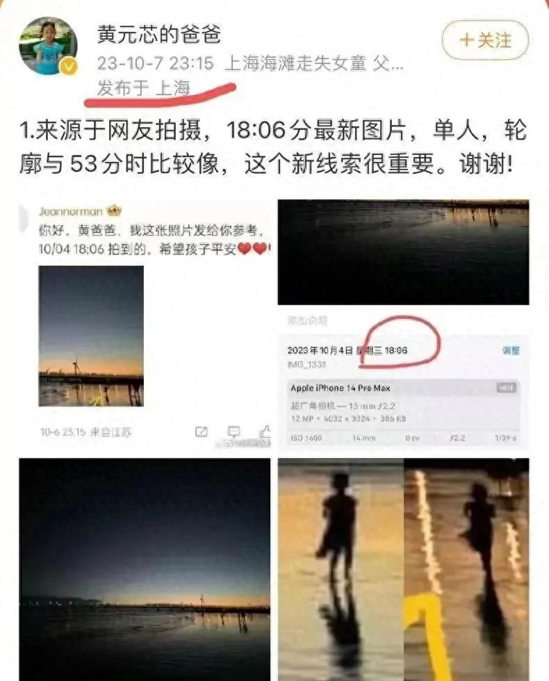 一位当时也在海滩的网友提供了18点06分拍摄的疑似女儿照片,这让所有人燃起希望。