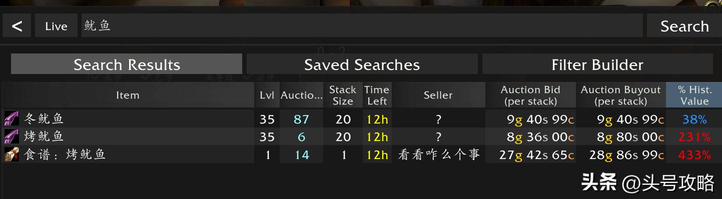 AH搜索小鱼,买图纸,买60条新鲜的小鱼。