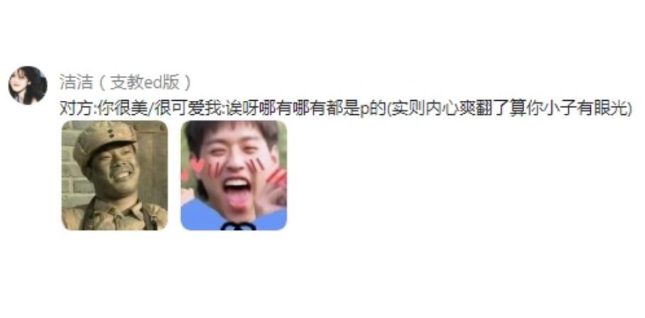 2.所以你这个究竟是什么表情啊,哈哈哈,确实,如果换做我被夸的话,真的是不知道要说什么为好了,虽然内心确实很开心,但表面却还要一副不以为然的表情。