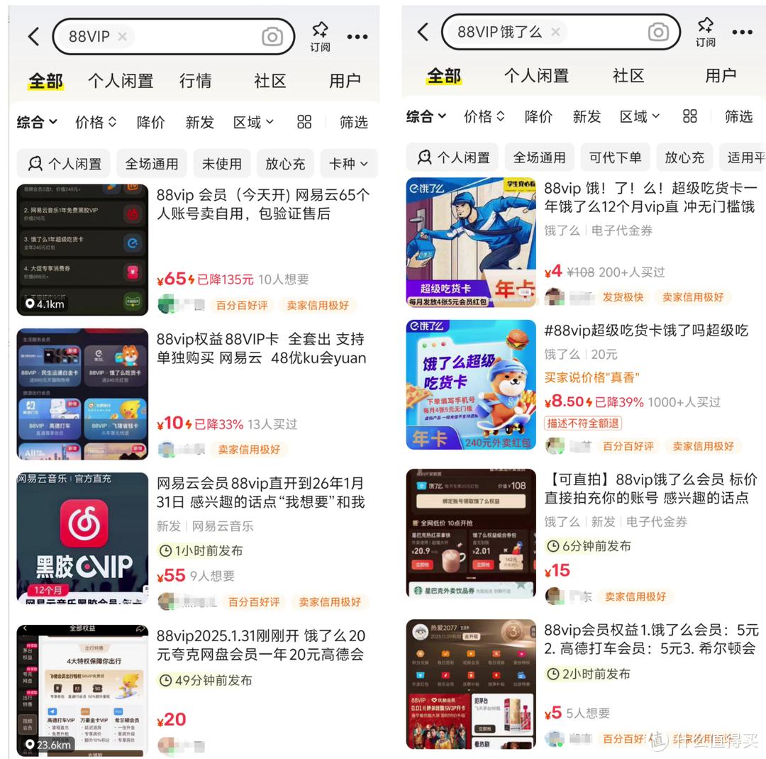 更特殊的如京东PLUS大会员里面附带的腾讯视频会员、88VIP里面附带的饿了么、网易云会员等,会被用户拎出来单独售卖。