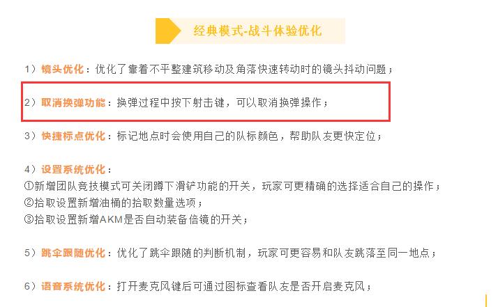 然后就是关于取消换弹功能的消息,在新版本更新的时候,加入了一个取消换弹功能,这个功能在上线后也是引起了玩家的热议,对于换弹癌的玩家来说,这个功能确实很好,下意识换弹如果发现敌人的话,可以直接打断换弹流程然后开枪反打。