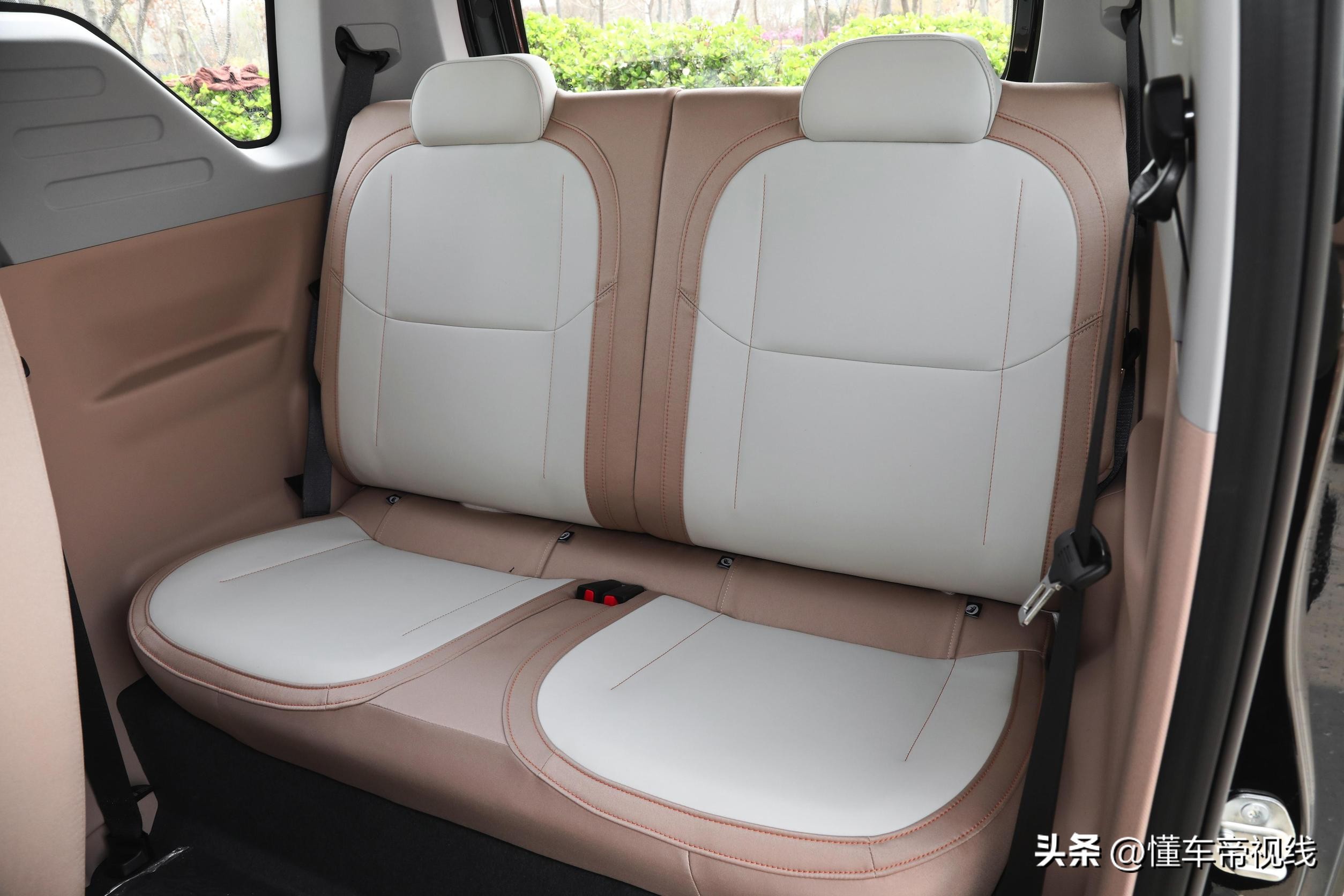 熊猫卡丁前排采用一体式座椅,后排座椅配有一体式头枕,支持5/5比例放倒,后备厢空间最大可扩展至800升。