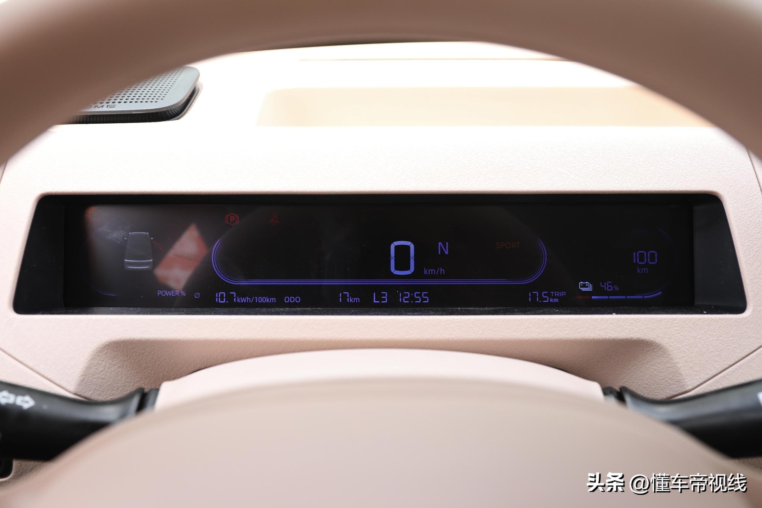 熊猫卡丁车内提供超加粉、百分白配色可选,采用9.2英寸彩色仪表以及8英寸悬浮式中控大屏,副仪表台布局有旋钮式换挡机构及车窗控制键,彩色仪表可显示50余项行车信息,并支持多色背光;8英寸中控屏则支持无线投屏、无感互联、语音控制、导航、听歌等功能。