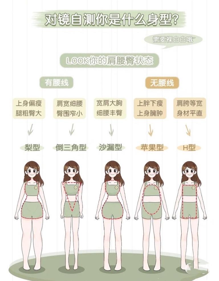 介绍应对方法之前,先来搞清楚什么是梨形身材。按照肩宽、腰围、臀胯之间的关系,可以把我们的身材分为曲线感明显的X型,直线条的H型,上窄下宽的A型身材(也叫梨形身材),以及上半身宽四肢细的苹果型,每一种身材的穿衣特点都有所不同。这次就给大家专门分析一下腰部细,下半身胖的梨形身材,也就是大部分亚洲女性的“通用身材”。