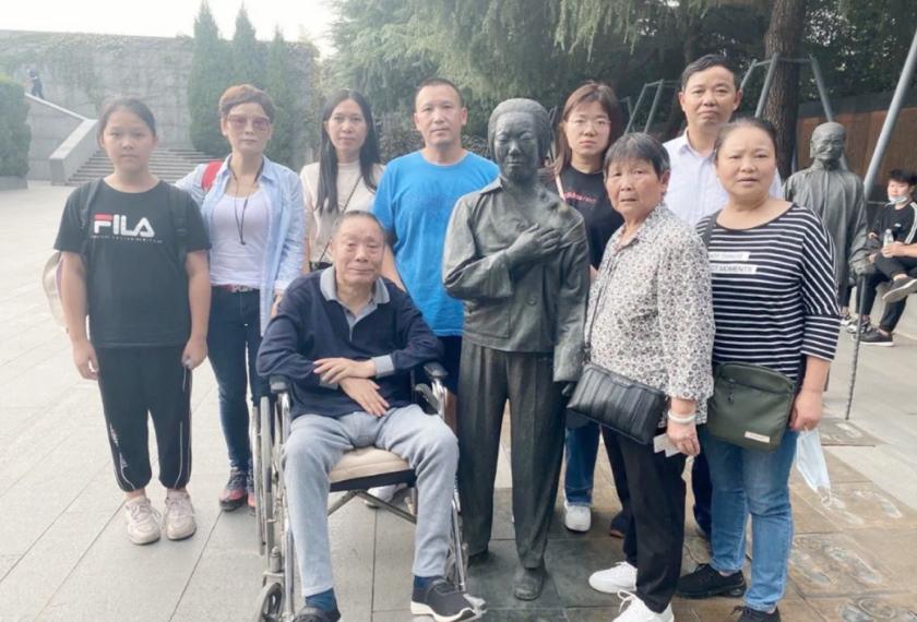 10月3日,96岁的南京大屠杀幸存者岑洪桂和妹妹岑洪兰,带着家人们一起来到纪念馆参观。经历过战争苦难的岑洪桂如今已是四世同堂。他坦言:“带着孩子们来纪念馆参观学习,接受爱国主义教育。”