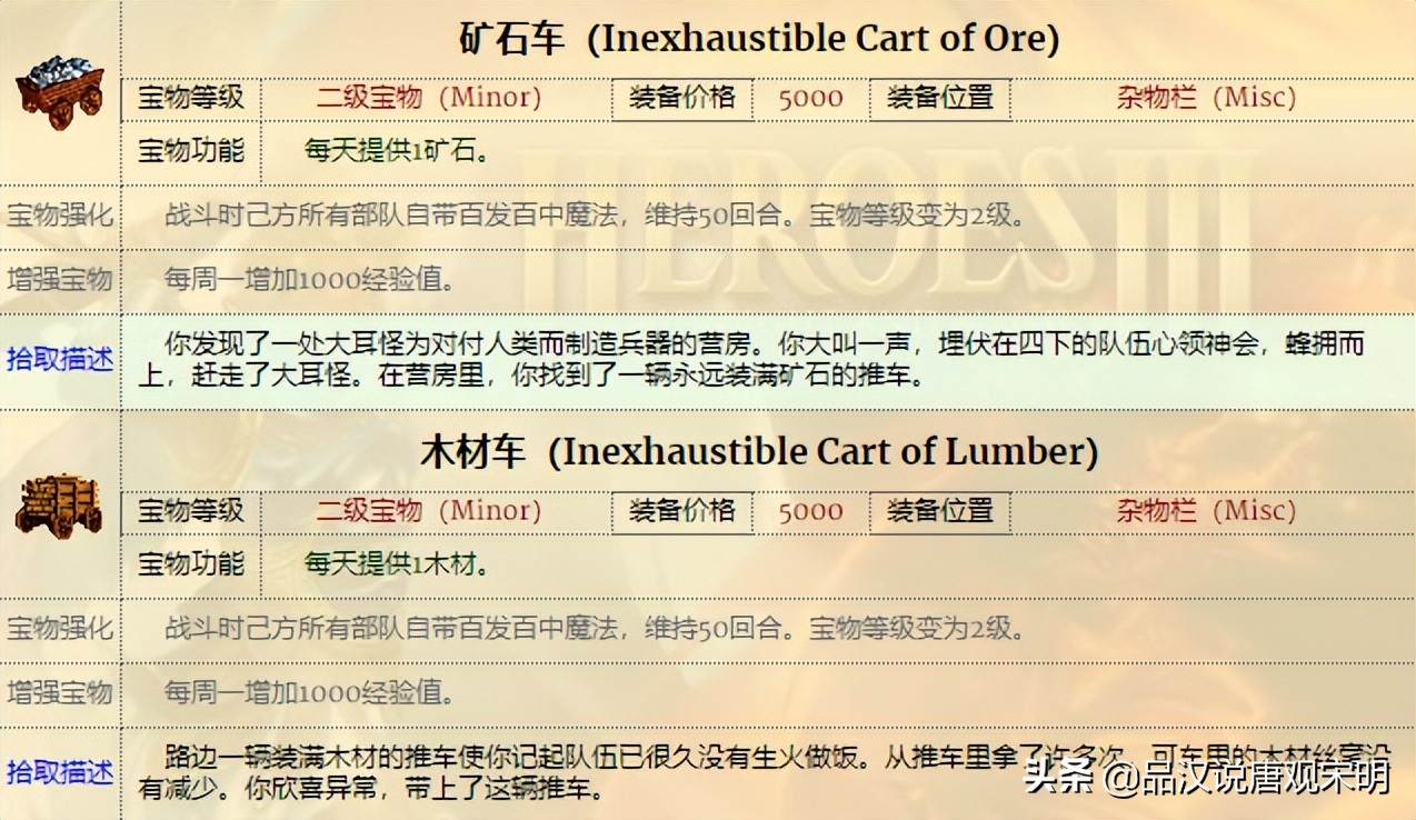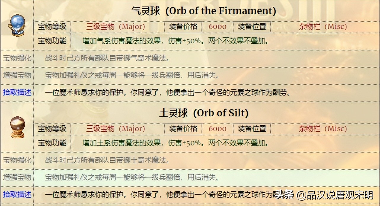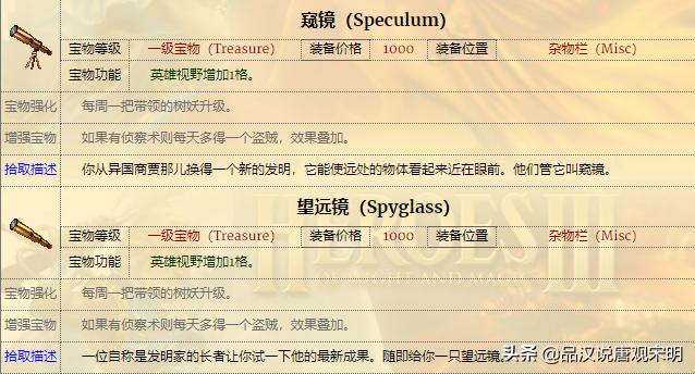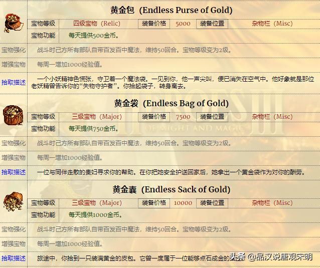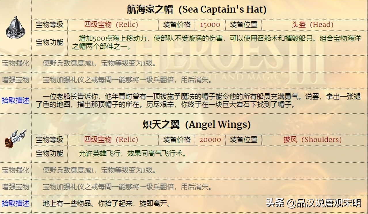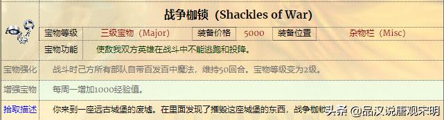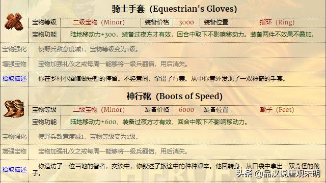 如果说兵种是部队,那么宝物就是英雄无敌3英雄身上的装备。