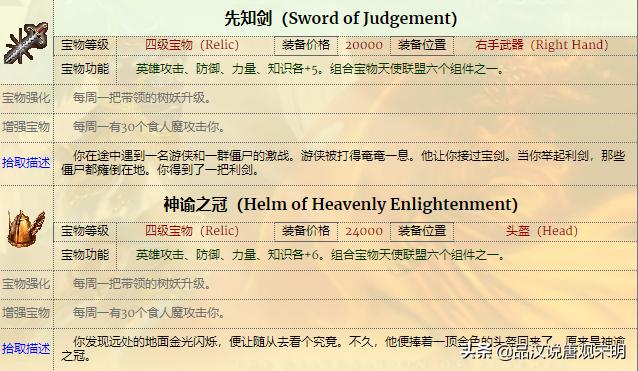 但是天使联盟系列就不一样了。先知剑全属性+5,总体提升20点。神谕之冠全属性+6,总体提升24点。都是比其他一些组合宝物还要强横太多的单件宝物。
