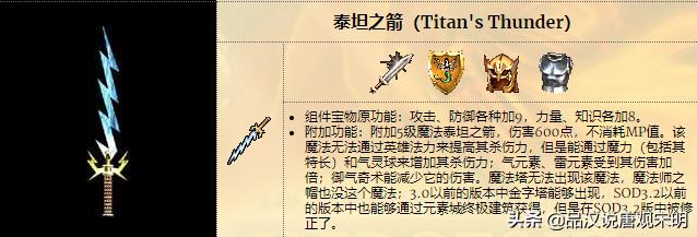 泰坦之箭:攻击、防御各加9;力量与知识各加8,可以使用泰坦之箭技能。