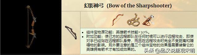 幻影神弓:箭术+30%,且远程部队任何情况下都可以射箭且不受距离与障碍影响。