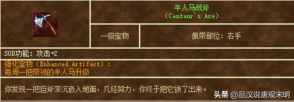 骷髅盔:知识+2;骨质胸甲:力量+2;半人马战斧:攻击+2;矮人王盾:防御+2