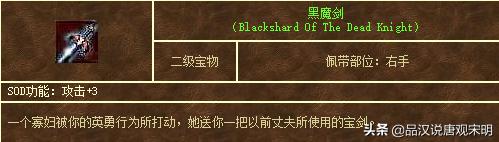 而且和前面的骷髅盔和骨质胸甲一样,这个档次里的黑魔剑与亡灵盾同样也是组合法宝诅咒铠甲一部分。所以价值自然比另外两件要更珍贵。