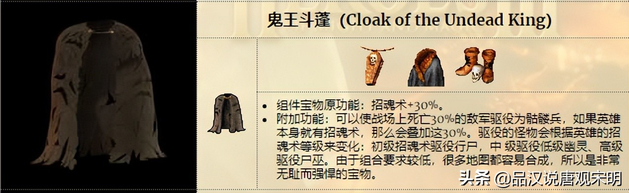 鬼王斗篷:招魂术+30%,且最高级可以让招魂单位变成尸巫