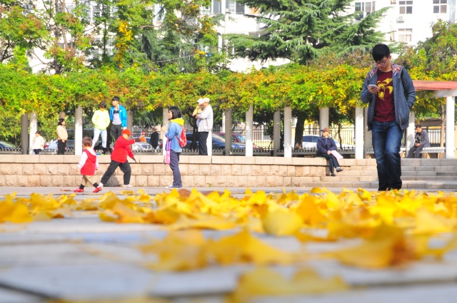 银杏叶都已泛黄,