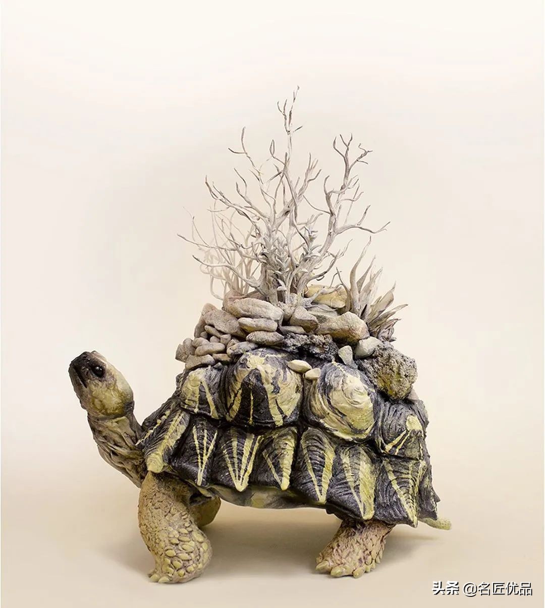 陆龟坚硬的外壳在这件作品中完全就变成了一座真正坚挺的大山