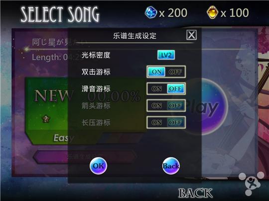 即便是系统自生成,也支持多种难度、调节光标难度、是否开启双击、滑音等选项,比别的自生成应用更有“技术含量”一点。自生成的谱面打起来也是有些别扭的,打击节奏跟歌曲脱节厉害,当然这种我们本来就不能抱太大希望。如果你足够有耐心,而且对歌曲足够熟悉,那么大可以进入编辑模式,制作属于自己的谱面。