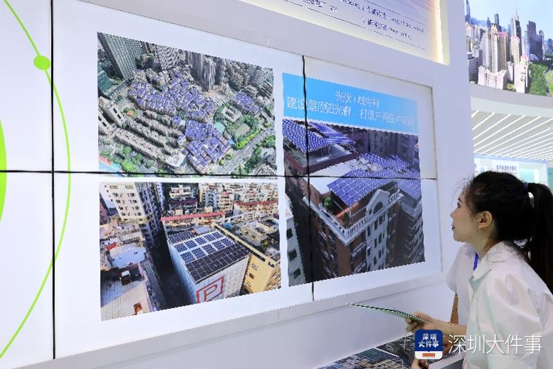 “福田区上梅林城中村光伏项目是深圳燃气首个落成的城中村户用光伏项目,可以提升屋顶利用率,光伏组件直接吸收太阳能,提升居民居住品质”。深圳市深燃清洁能源有限公司工作人员田丛向参展人员介绍深圳燃气的城中村户用光伏项目。